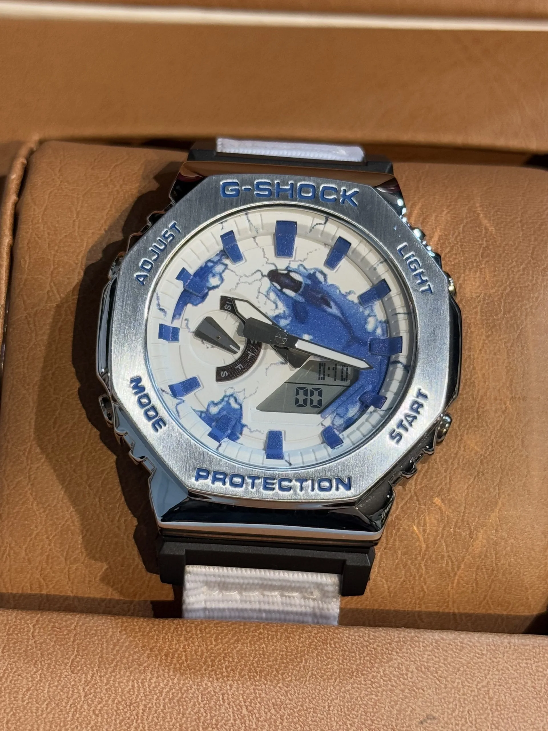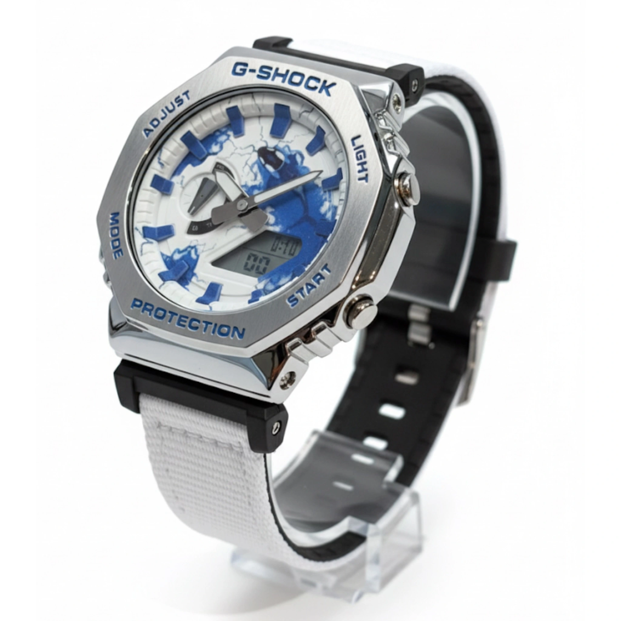 ساعت جی شاکGM2100بند برزنتی سفيد