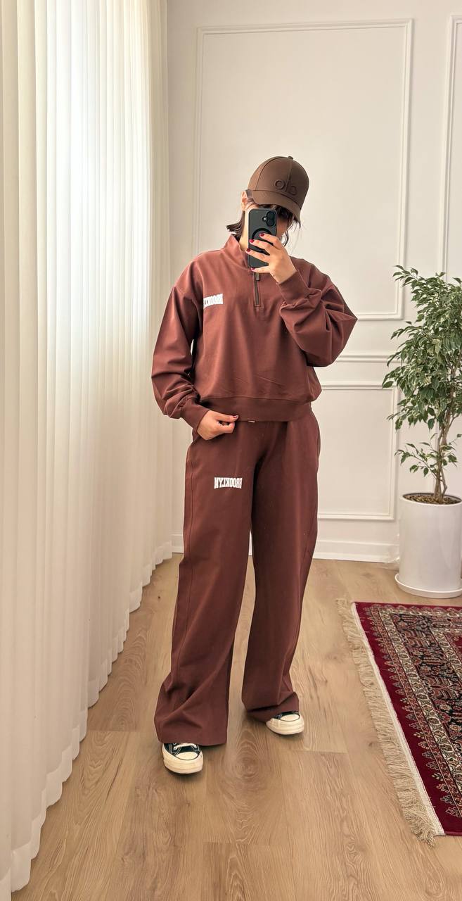 ست سویشرت نیم زیپ و شلوار پاییزه بروکلین