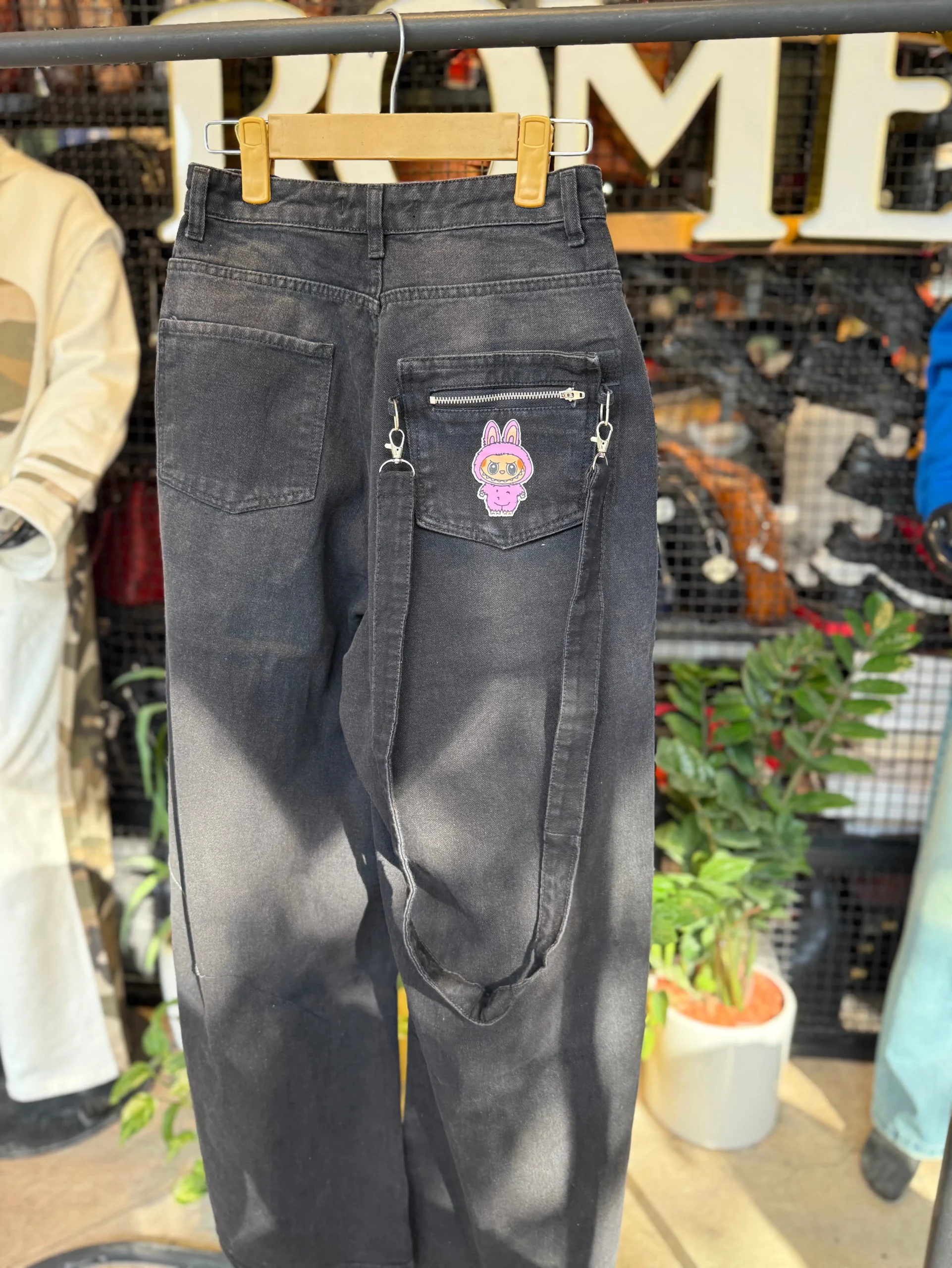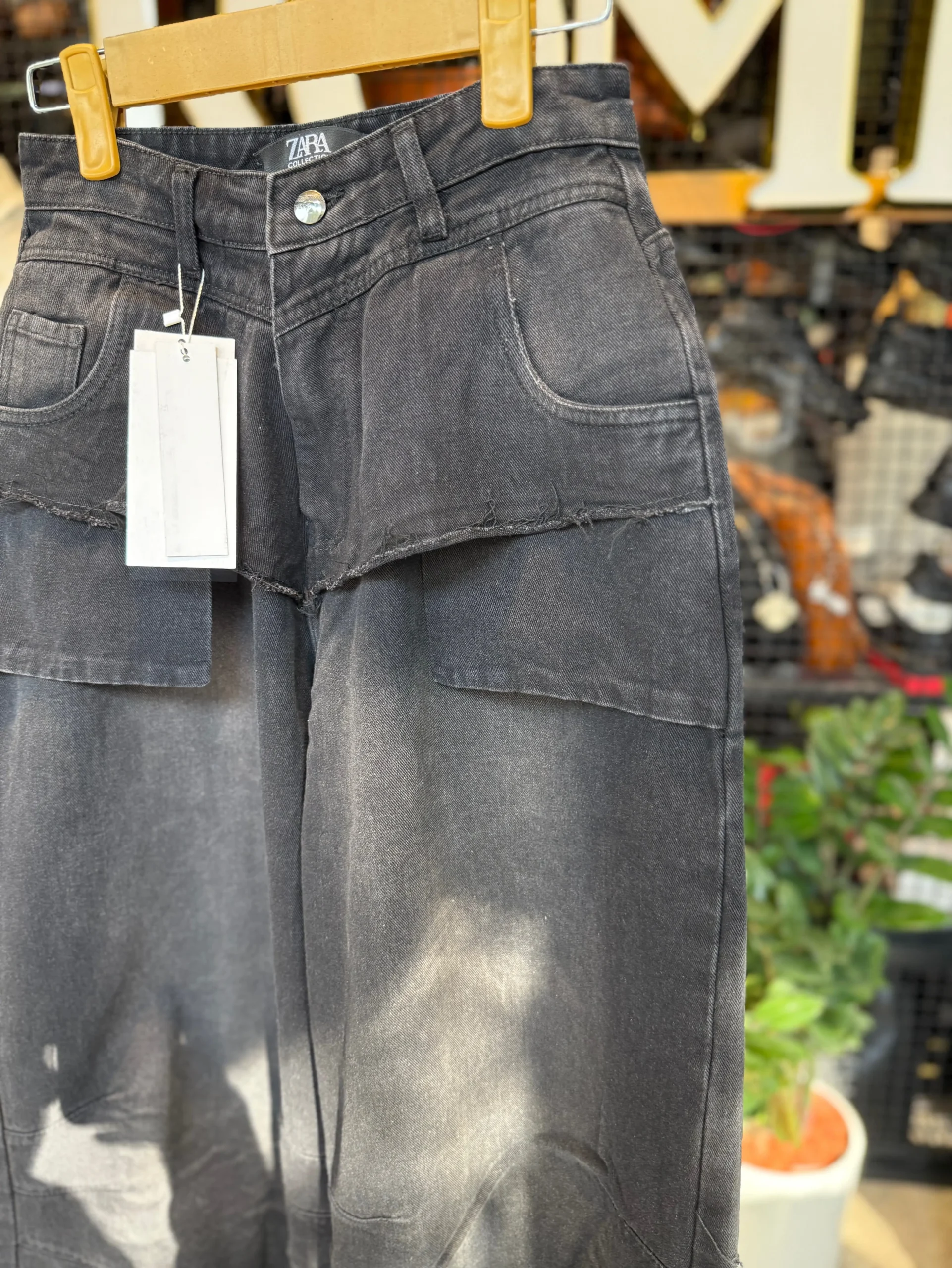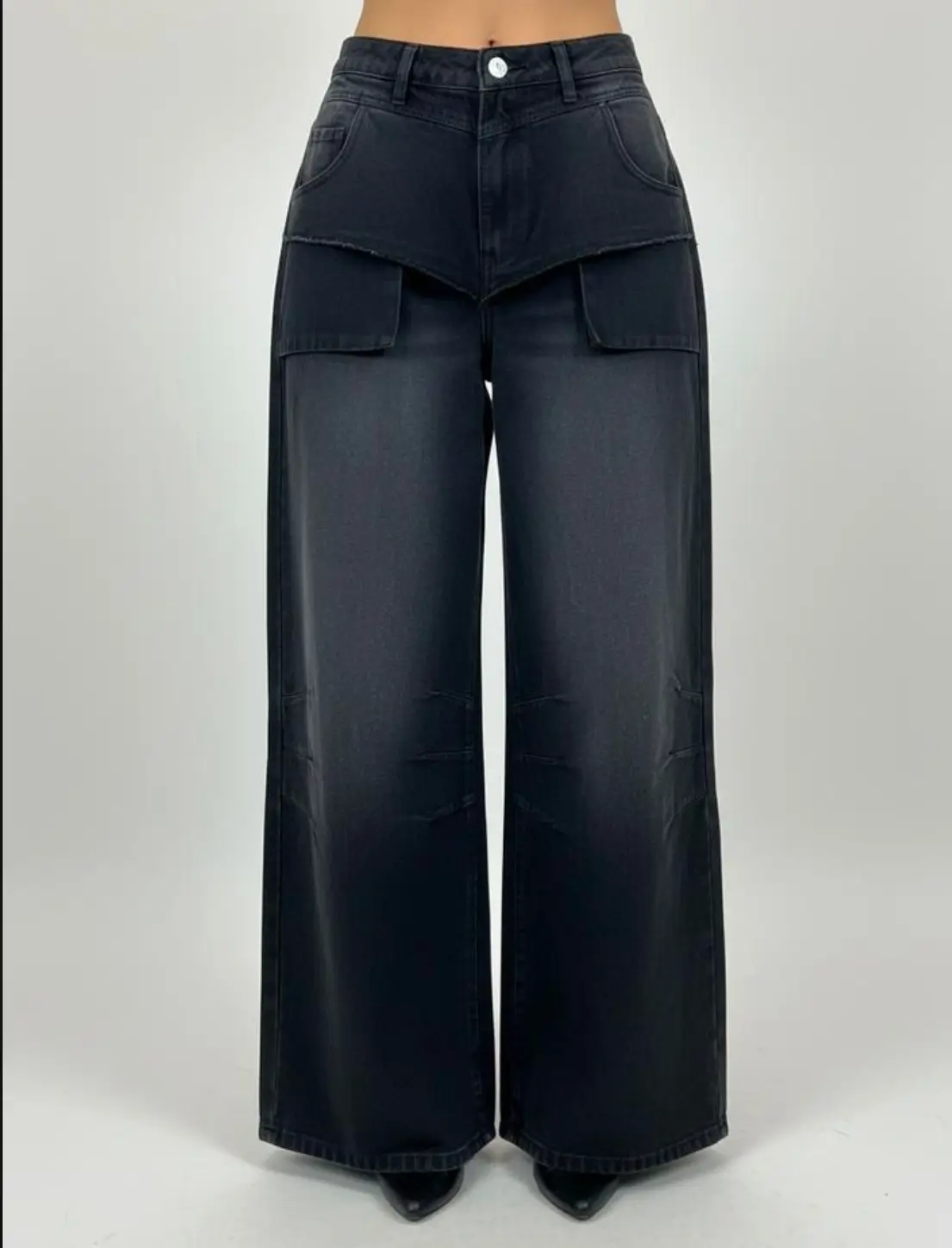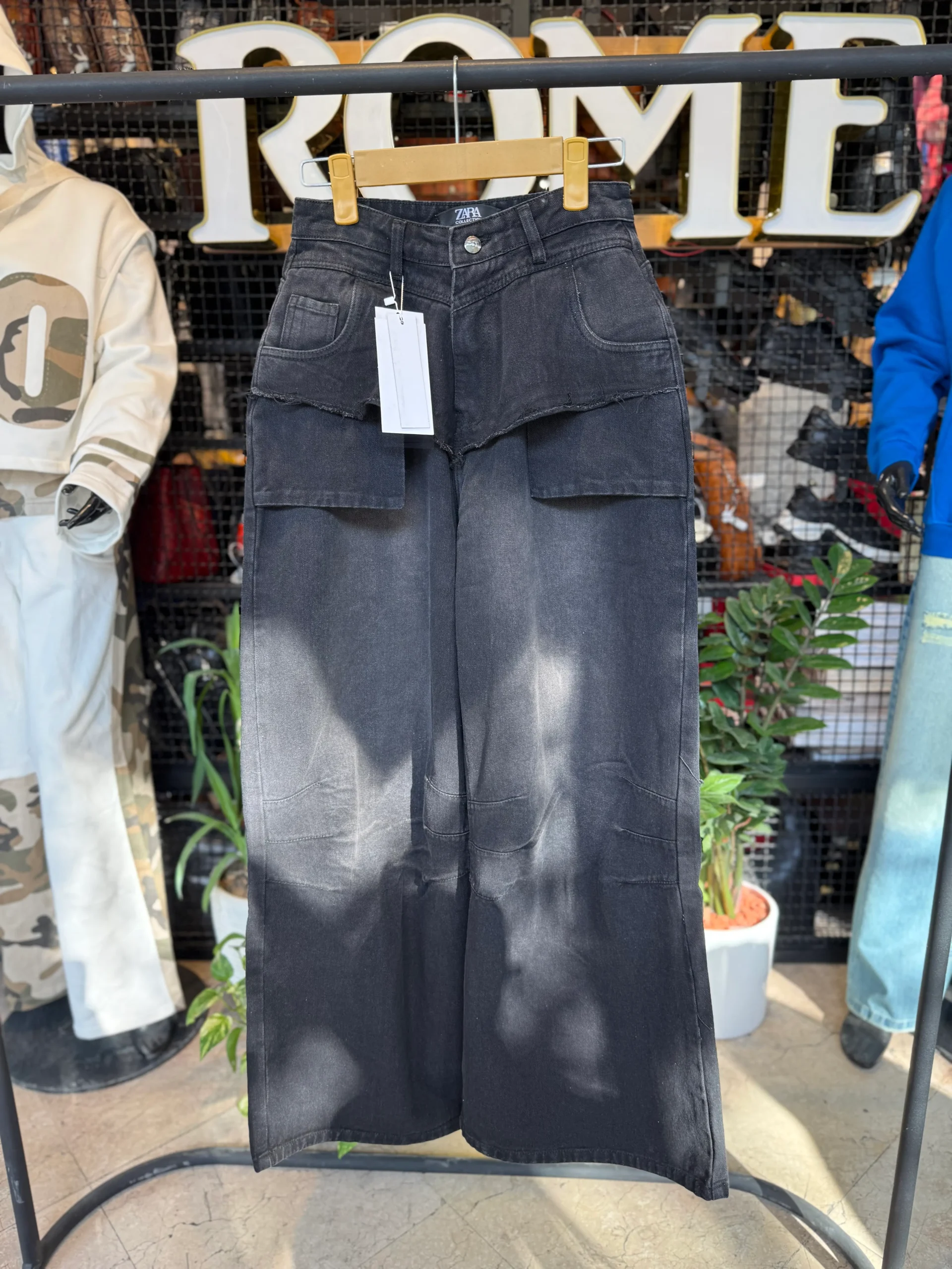 شلوار زنانه فول بگ ذغالی کيف چسبي لبوبو