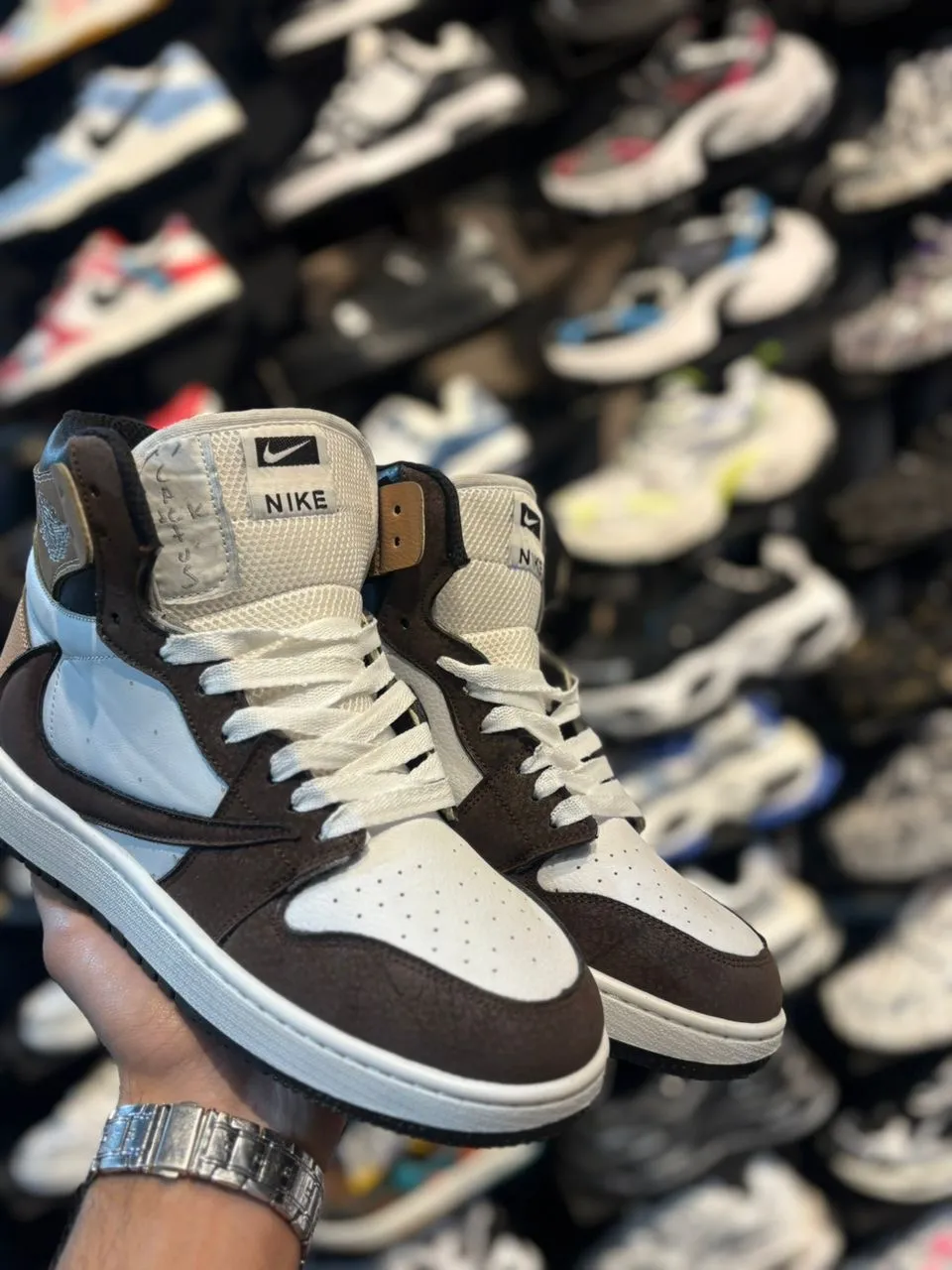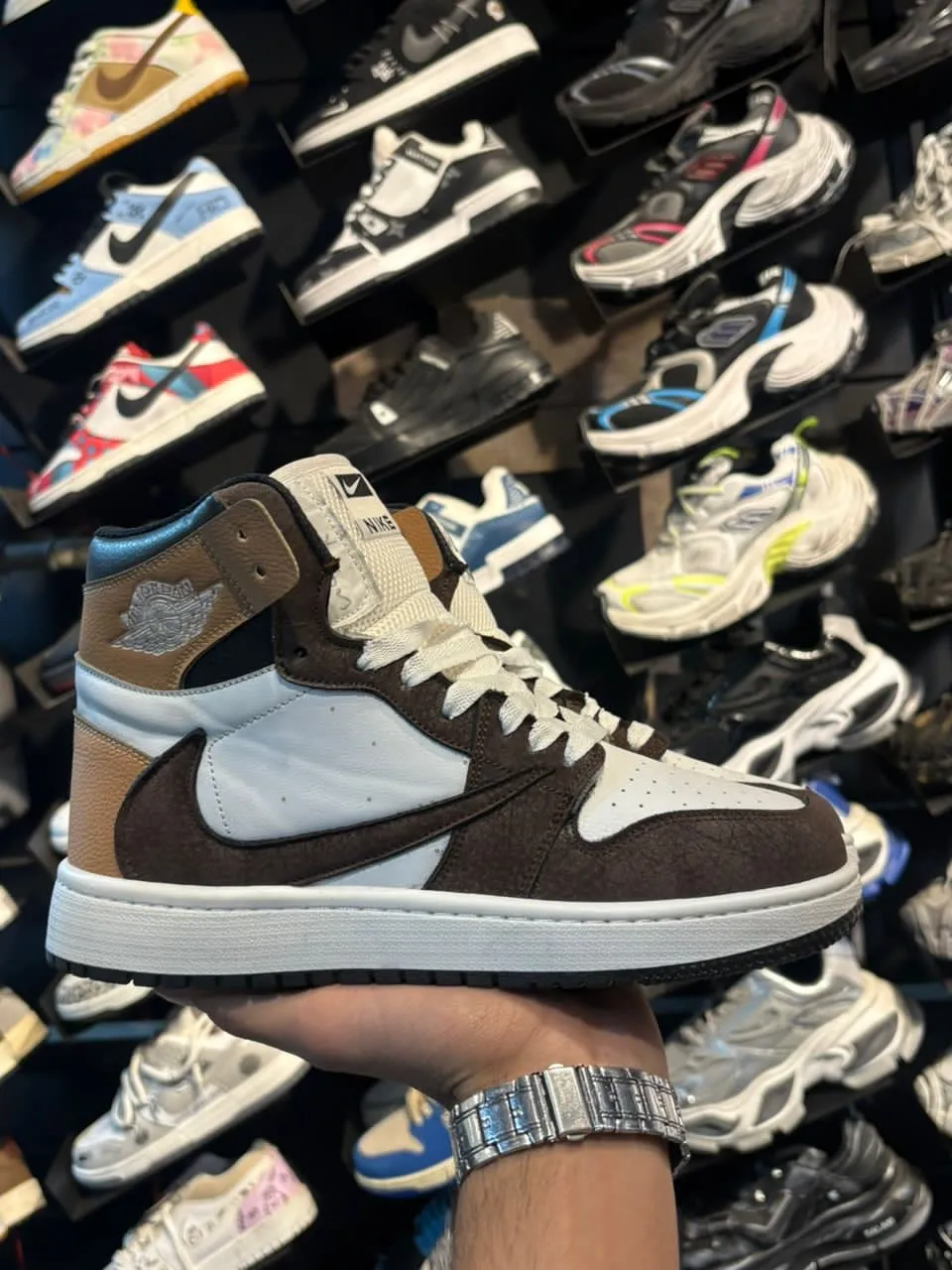 خانه » فروشگاه » کتونی مردانه ترويس ساقدار سفيد قهوه ای