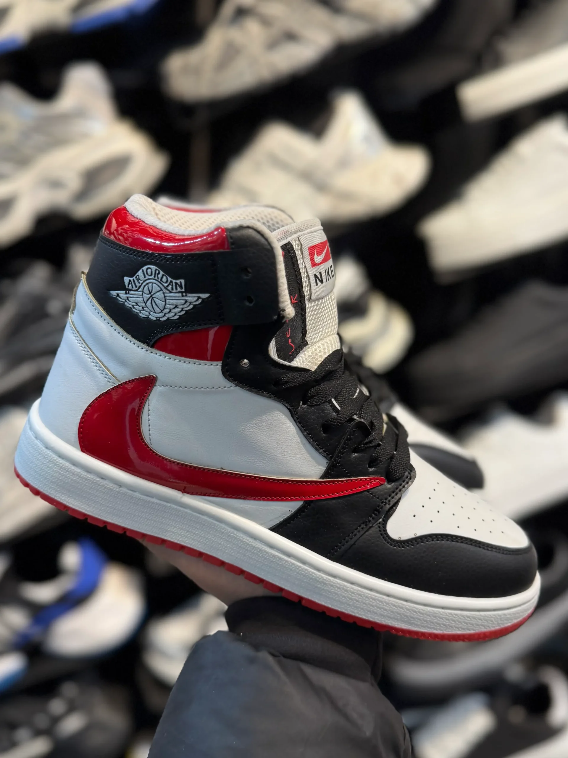 کتونی مردانه جردن ساقدار سرمه ای قرمز کاستوم