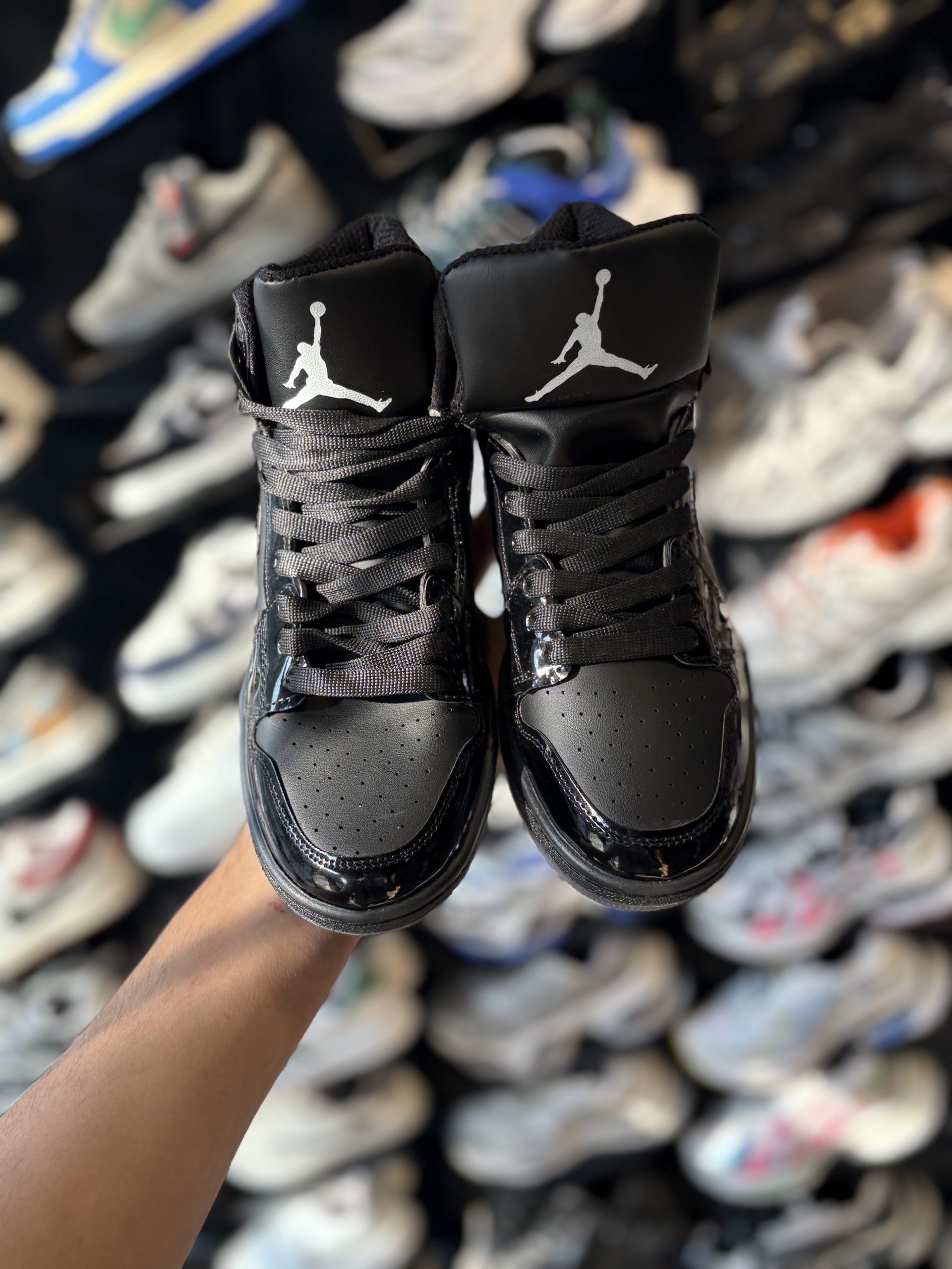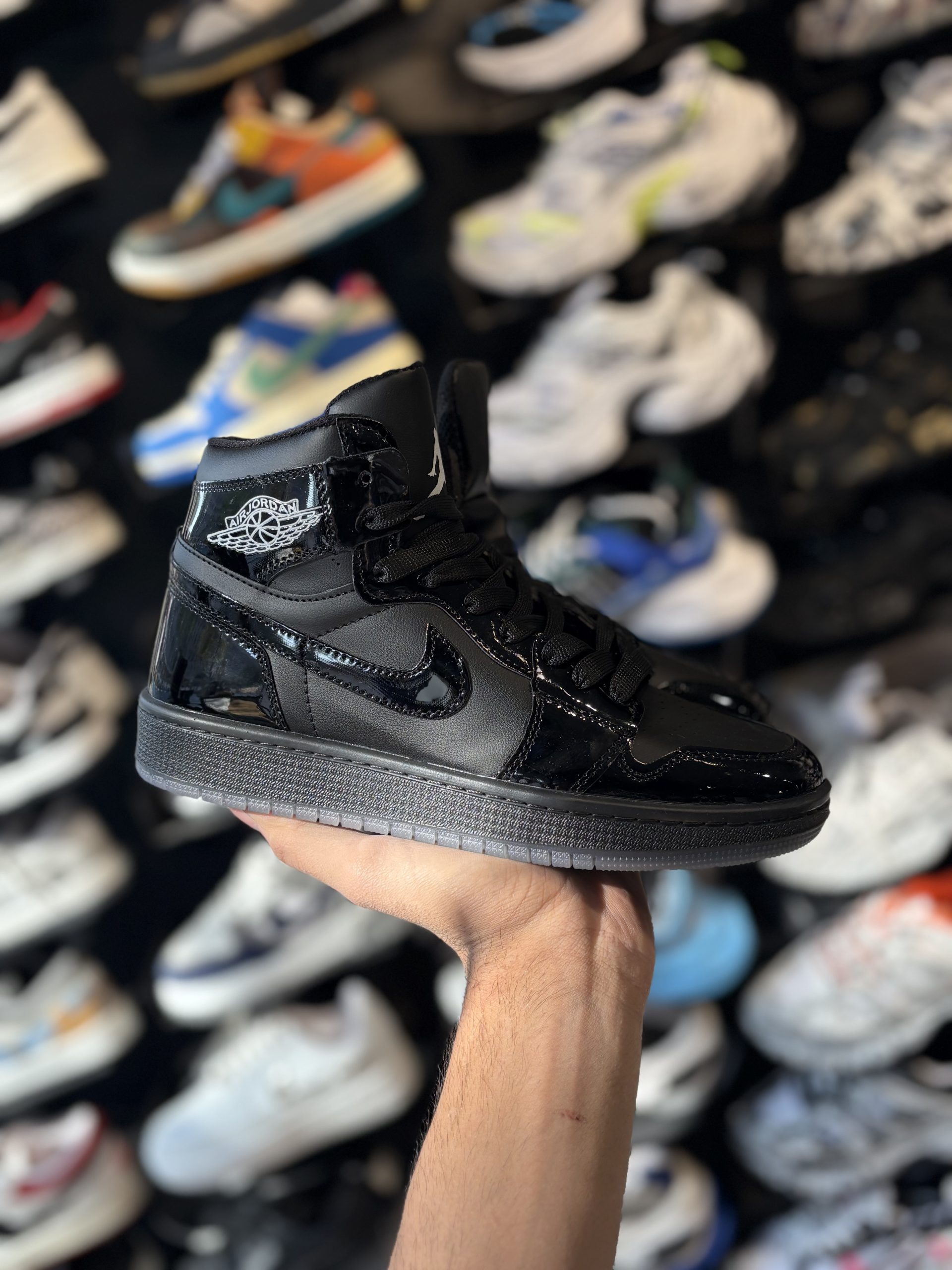 کتونی مردانه جردن ساقدار مشکی ورنی